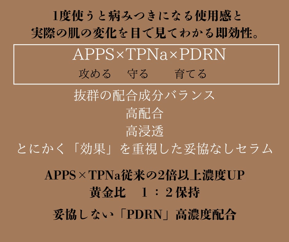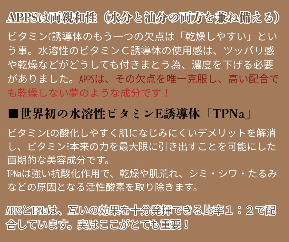 APPSとTPNaの最適配合により、浸透力が大幅にアップ。肌の奥深くまで素早く届き、効果的にコラーゲンの生成を促進し、弾力のある肌を実現します。
